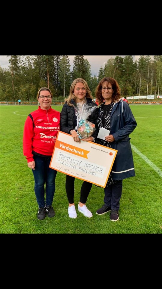 2019 års Roger Arvidssons stipendie tilldelades Johanna Fridlund. Johanna spelar i F15/18. Såhär lyder motiveringen... ”Stipendiet tilldelas till Johanna för att hon har en stark tro på fotboll som tjejidrott. Sporten ligger henne varmt om hjärtat och mycket av sin tid ägnas åt fotbollen. Johanna har i många år legat i framkant och har haft steget före sina medspelare på fotbollsplanen. Nora BK ser talangen i henne. En glad och sprallig tjej med bestämda tillslag på bollen.” Lycka till i framtiden, med fotbollen och livet! // Nora BK Skänk gärna pengar till Rogers fond så att vi även framöver kan dela ut dessa stipendier till våra duktiga ungdomar. Swish 123 041 69 82 Bankgiro 342-9263 Märk insättningen ”Roger Arvidssons minnesfond” Tack för din gåva!