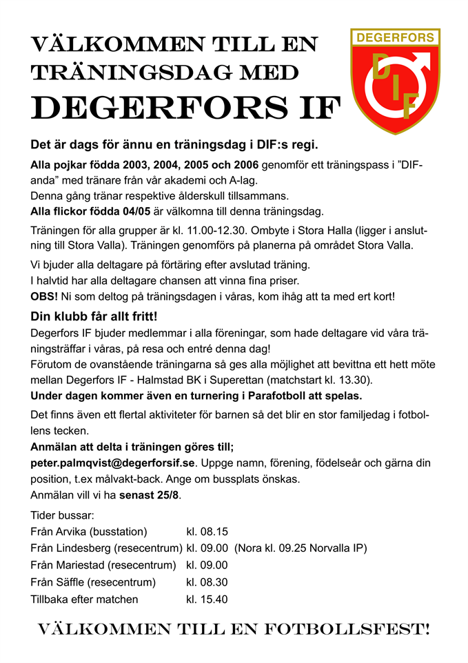 • TRÄNINGSDAG MED DEGERFORS IF!