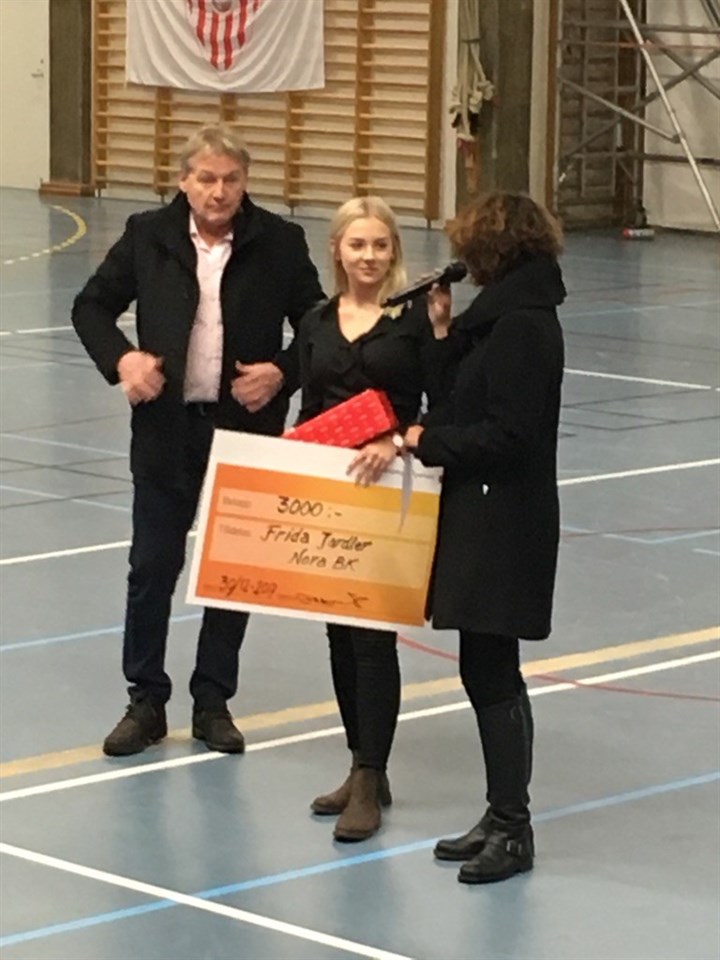 Nora BK delade ut Roger Arvidssons stipendium i samband med Berslagscupen. Årets stipendiat var 15-årige Frida Jardler som fick ta emot en summa på 3.000 kronor. Frida är en av flera mycket lovande fotbollstjejer i Nora BK och förutom att hon tagit en plats i A-laget så har hon deltagit i Distriktslaget. Frida är en mycket lojal och bra lagkamrat samtidigt som hon är tränare för ett av föreningens yngre flicklag. Frida har de egenskaper som en person skall ha som belönas med detta stipendium. Roger var under hela sin långa karriär, både inom fotboll och bandy, en mycket lojal och bra kompis både på och vid sidan av planen. På bilden ses Frida tillsammans med Ari Kainulainen som var Rogers lagkamrat och vän under hela hans karriär samt Rogers sambo Sara Bornedahl. NORA BK 2 jan 2018 0kommentarer