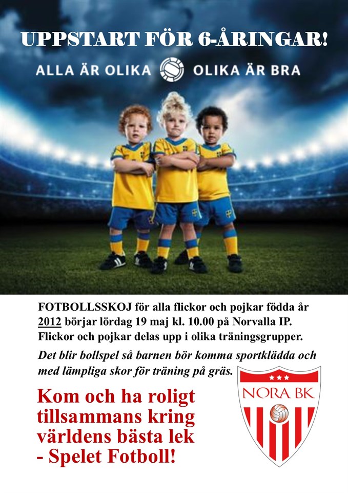 Lördag 19 maj kl. 10.00 på Norvalla IP är det dags för uppstart för alla flickor och pojkar födda 2012! Naturligtvis är även äldre nybörjare välkomna. Har ni inte möjlighet att delta den 19/5 så är det bara att komma en annan dag. Varje lördag kl. 10.00-11.00 är det träning på Norvalla IP. NORA BK 15 apr 2018 0kommentarer