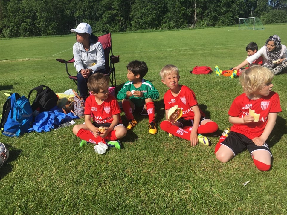 Några av spelarna i laget laddar in nytt "bränsle" mellan matcherna i poolspelet. Pojkar -09 är inne på sin andra träningssäsong och det är ca 20 killar som tränar regelbundet. Ifjol var det mest lek under träningarna men i år är det mer betoning på fotbollsträning även om det förstås är viktigt att leken finns kvar i denna låga ålder. Det är mycket passningsspel som vi lagt fokus på och killarna har blivit mycket mer bekväma med bollen. Killarna har utvecklats rejält sedan fjolåret och vi har under våren deltagit i poolspel. Vi har två lag anmälda i poolspelet så alla får mycket speltid. Det har gått över förväntan och lagen har vunnit ett flertal matcher och dessutom haft väldigt skoj på de poolspel som anordnats. Pojkar -09 börjar träna efter sommaruppehållet söndag 7 augusti kl. 15.00 på Pershyttan IP. NORA BK 11 jul 2016 0kommentarer