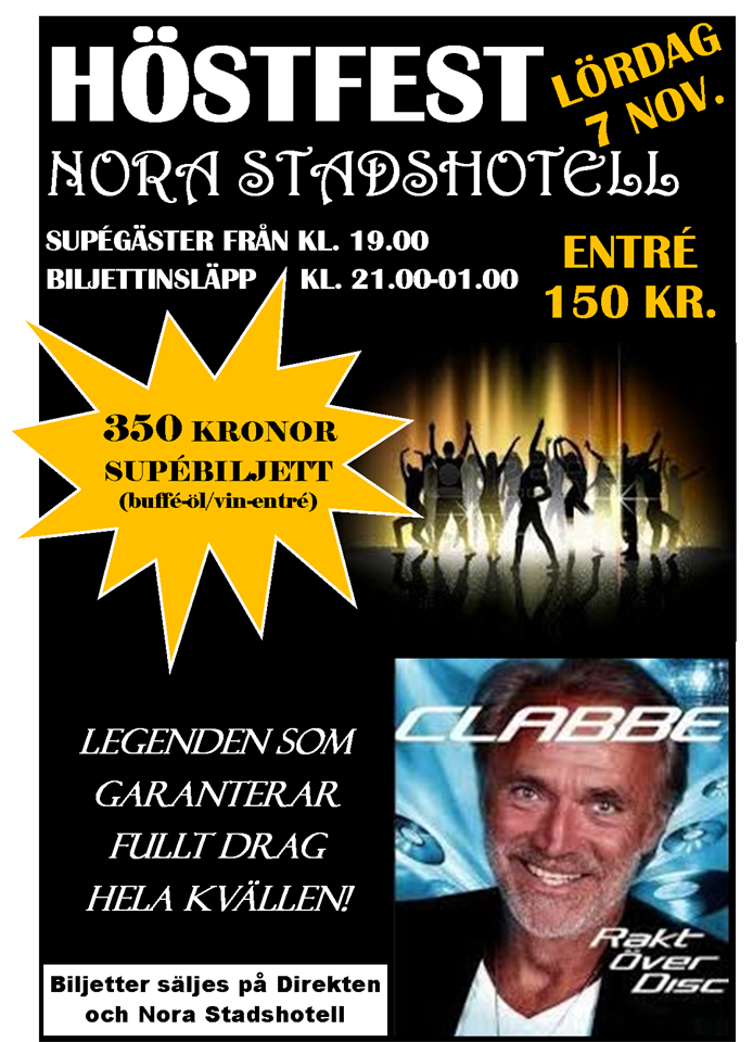 Lördag 7 november skall vi alla hjälpas åt att få ett fullsatt Nora Stadshotell! Det skall bli en festkväll vi sent skall glömma och uppmaningen som lyder är given; Alla till Nora Stadshotell! NORA ÄR VÅR STAD - HÄR ROAR VI OSS! NORA BK 16 sep 2015 0kommentarer