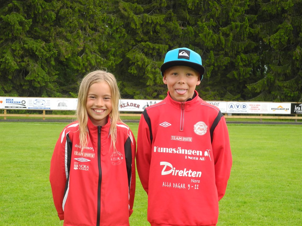 I torsdags hade Nora Pershyttan BK Fotbollens Dag på Norvalla. Vi var igång redan kl. 15.00 med bl.a. tipspromenad, speedshooting, prickskytte. ÖLFF och Team Sportia var på plats för att ge info och visa produkter. En av höjdpunkterna denna dag var straffsparkstävlingen där en spelare från varje ungdomslag fick lägga straffar på våra seniormålvakter Jennifer Wiker, Björn Andersson och Alexander Appelqvist. Tävlingen var mycket uppskattad och efter en hård strid så ser ni vinnarna Lina Hjortzberg och Melker Danielsson på bilden ovan. Dagen avslutades med att herrlaget tog en övertygande seger i seriefinalen mot Vretstorp i Närkefyran och därmed skaffade sig ett fint läge inför höstsäsongen. Vi tackar alla spelare, ledare och föräldrar samt övriga besökare för att ni gjorde detta till en fin dag för gemenskapen runt fotbollen i Nora Pershyttan BK. NORA BK 20 jun 2015 0kommentarer